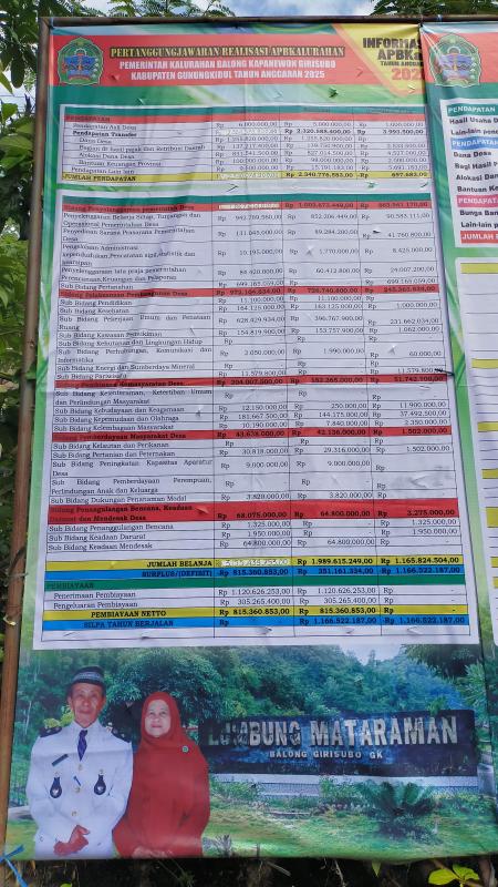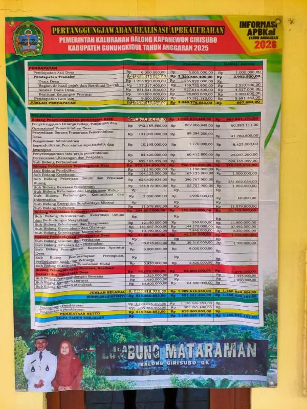 Pertanggungjawaban Realisasi APBKalurahan Balong Kapanewon Girisubo Tahun 2025